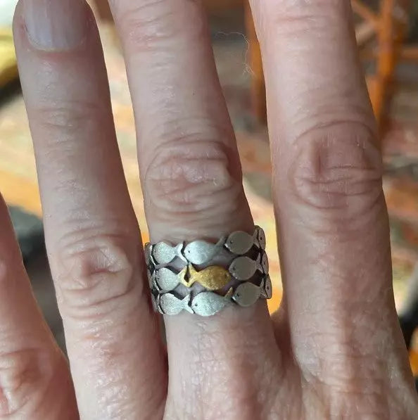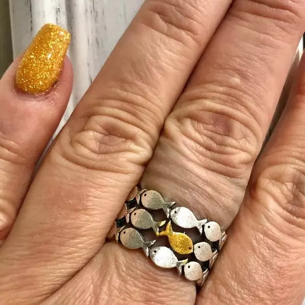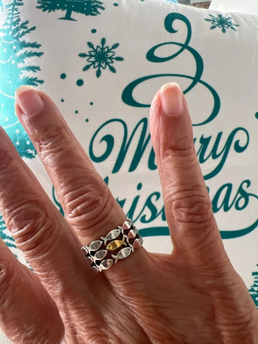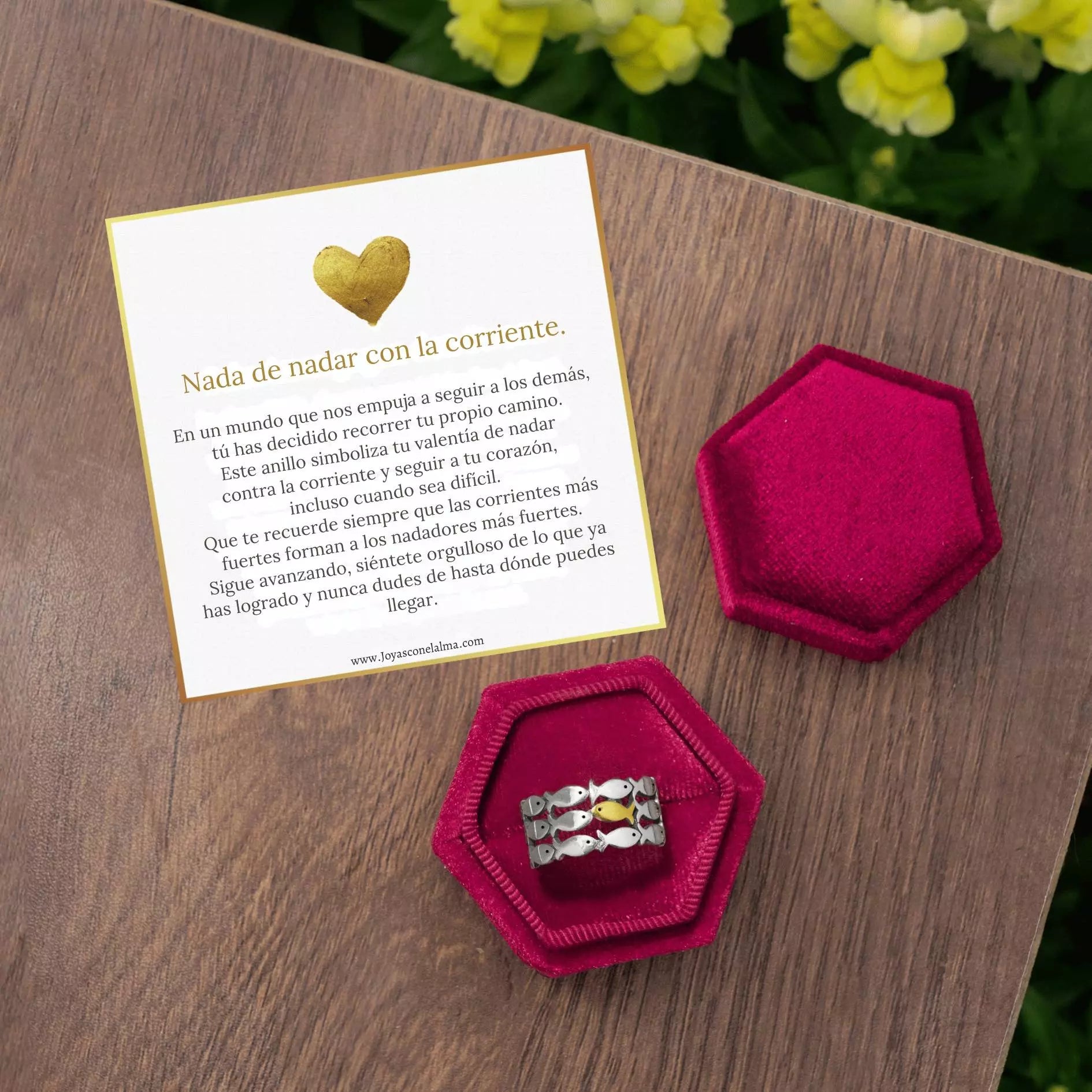 ¡Me encanta este anillo! Estoy pasando por un momento complicado en la vida, mi amiga me regalo este anillo y me da fuerzas para no rendirme y superar este bache. Solo mirarlo y ver el pez nadar contracorriente crea un significado increible.