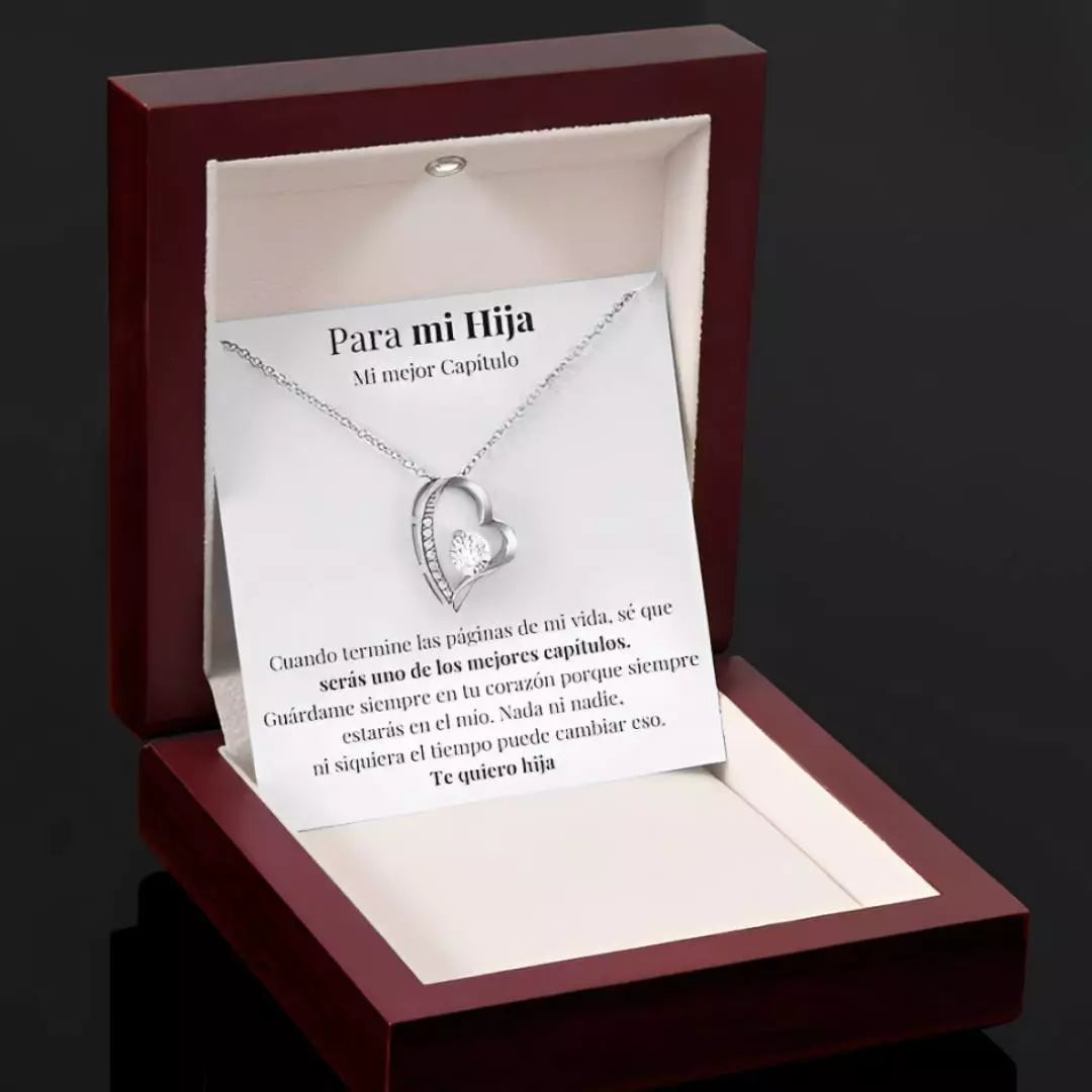 ¡Sí! El collar viene en una caja de lujo con luz LED e incluye la tarjeta con el mensaje de padre a hija, lista para regalar.